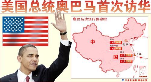 奧巴馬這次備受關注的訪問將一直延續到18日。到訪上海、北京兩地,政治活動、文化交流活動相交織,日程緊密。其中最受關注的無疑是胡錦濤主席和奧巴馬即將舉行的政治會談。