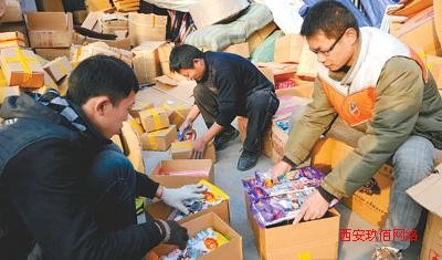 圖為浙江義烏一家網(wǎng)店員工忙著包裝客人網(wǎng)購的年貨。
