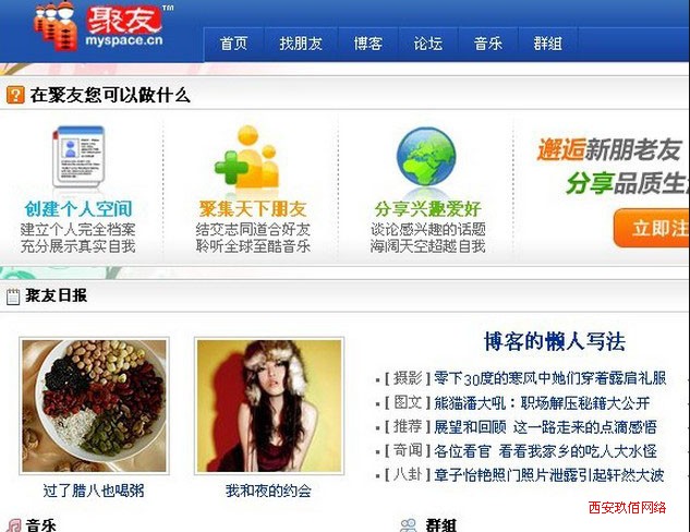 聚友網是全球最大的在線交友平臺MySpace的中國本地化網站,于2007年進入中國,定位白領社區,通過與MSN合作導入用戶,當時在白領中具有一定影響;但隨著開心網、微博等新型社交形式的興起,聚友網逐漸式微,2010年4月宣布轉型音樂社區,但并未成功,