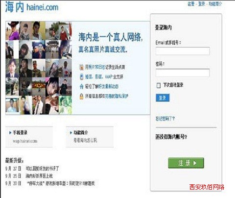 海內網于2007年11月上線,可為用戶提供個人空間,迷你博客,相冊,群組,電臺以及電影評論等服務。這是其創始人王興的第三個社交網絡創業項目,前兩個分別是校內網、飯否網。