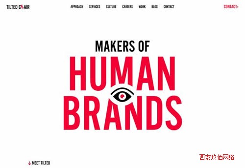 Tilted Chair 這個網站中,設計師將標題中切割出空間,放上了一只眼睛,非常引人注意。
