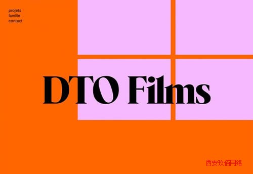 DTO Films 這個網站采用了另外一種方式,設計師在背景中裁剪出一個區域,并且以明亮的色彩填補其中,再疊加上超大的標題文本,錯落地排布,搭配上動效,營造出有趣的視覺體驗。