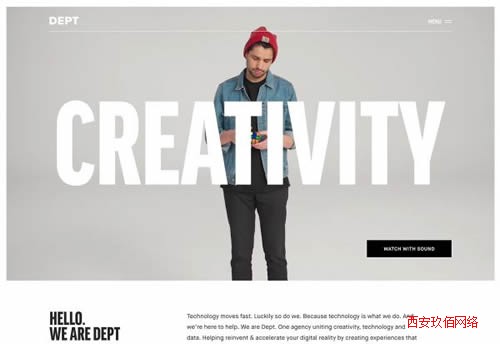 Dept Agency 當中,設計師不僅讓視頻的剪輯切換更快,而且還使用了快進的方式加速,快速剪輯的視頻當中,每以小段都包含了一個關鍵詞,用戶幾乎不需要滾動頁面就可以在快速展現的視頻中了解到很多內容。