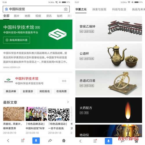 據(jù)介紹,雙方的合作主要包含三個(gè)方面的內(nèi)容。首先,雙方將合作打造一個(gè)科技教育服務(wù)公益平臺(tái),該平臺(tái)主要落地在百度搜索以及百度百科兩款產(chǎn)品中。現(xiàn)在,在百度App里搜索“中國(guó)科技館”,就可以看到在搜索結(jié)果頁(yè)置頂?shù)闹袊?guó)科學(xué)技術(shù)館的官方熊掌號(hào)中提供了“展品講解”、“全景漫游”、“刷臉報(bào)名”以及“在線購(gòu)票”等服務(wù)內(nèi)容。這其中的“展品講解”功能相當(dāng)于提供了一個(gè)生動(dòng)的可供用戶在線游覽的科技館,借助AR的技術(shù)把很多科普知識(shí)直觀地呈現(xiàn)出來。