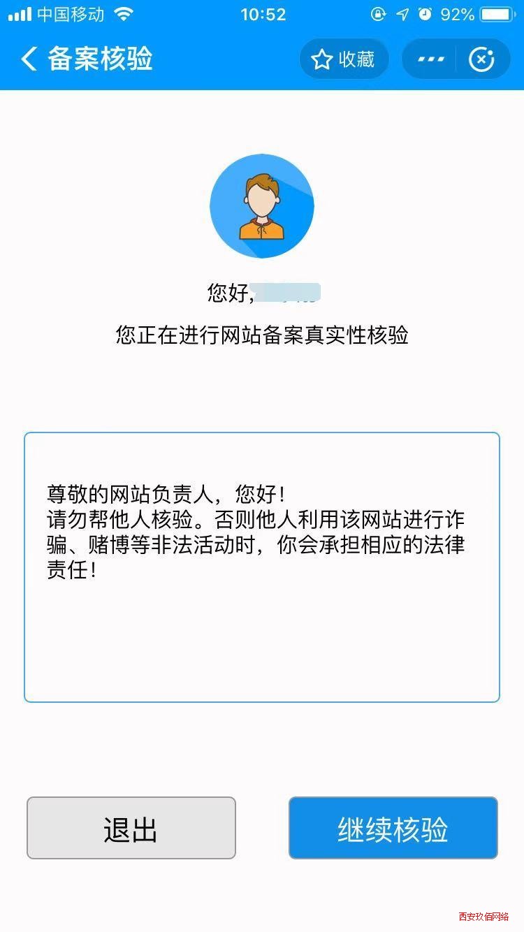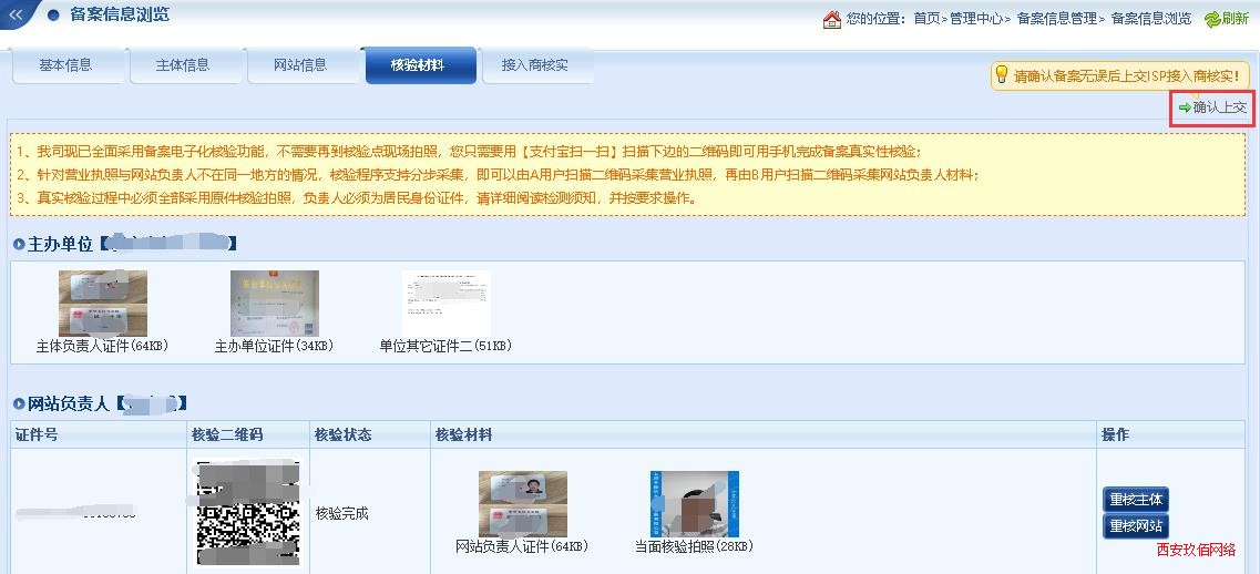 點擊“核驗證件”,核驗通過進入網站負責人信息核驗