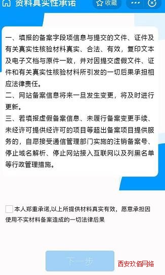 勾選同意,點擊下一步核驗真實性承諾書生成