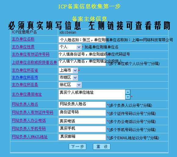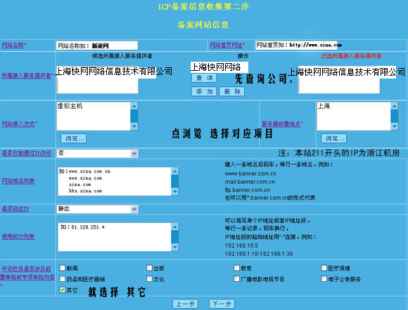 9。填寫備案主體信息(請?zhí)顚懻鎸嵭畔ⅲ?STRONG>地址要準確到門牌號,否則無法通過審核)10.填寫備案網(wǎng)站的相關信息。填寫完成后,點下一步,再確定提交就ok。。。。。接下來等待審核通過。每天去你郵件里看下,一般7個工作日即可以收到通知,否則再回來繼續(xù)提交申請!