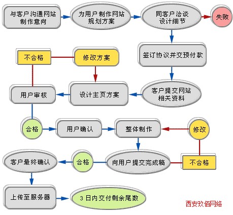 第三步:查詢申辦域名 根據(jù)企業(yè)的需要,決定是國際域名還是國內(nèi)域名。域名就是企業(yè)在網(wǎng)絡(luò)上的招牌,是一個名字,并不影響網(wǎng)站的功能和技術(shù)。如果是登記國際域名的話,就必須向國際互聯(lián)網(wǎng)絡(luò)管理中心申請;國內(nèi)域名則向中國互聯(lián)網(wǎng)服務(wù)中心登記。 第四步:網(wǎng)站系統(tǒng)規(guī)劃 網(wǎng)站是發(fā)布公司產(chǎn)品與服務(wù)信息的平臺,所以網(wǎng)站內(nèi)容非常重要。一個好的網(wǎng)站,不僅僅是一本網(wǎng)絡(luò)版的企業(yè)全貌和產(chǎn)品目錄,它還必須給網(wǎng)站瀏覽者,即企業(yè)的潛在客戶提供方便的瀏覽導(dǎo)航,合理的動態(tài)結(jié)構(gòu)設(shè)計,適合企業(yè)商務(wù)發(fā)展的功能構(gòu)件,如信息發(fā)布系統(tǒng)、產(chǎn)品展示系統(tǒng)等,豐富實用的資訊和互動空間。我們將根據(jù)客戶的簡單材料,精心進行規(guī)劃,提交出一份網(wǎng)站建設(shè)方案書。 第五步:確定合作 雙方以面談、電話或電子郵件等方式,針對項目內(nèi)容和具體需求進行協(xié)商。雙方認(rèn)可后,簽署《網(wǎng)站建設(shè)合同書》并支付50%網(wǎng)站建設(shè)預(yù)付款。 第六步:網(wǎng)站內(nèi)容整理 根據(jù)網(wǎng)站建設(shè)方案書,由客戶組織出一份與企業(yè)網(wǎng)站欄目相關(guān)的內(nèi)容材料(電子文檔文字和圖片等),我們將對相關(guān)文字和圖片進行詳細(xì)的處理、設(shè)計、排版、掃描、制作,這一過程需要客戶給予積極的配合。 第七步:網(wǎng)頁設(shè)計、制作、修改 一旦網(wǎng)站的內(nèi)容與結(jié)構(gòu)確定了,下一步的工作就是進行網(wǎng)頁的設(shè)計和程序的開發(fā)。網(wǎng)頁設(shè)計關(guān)乎企業(yè)的形象,一個好的網(wǎng)頁設(shè)計,能夠在信息發(fā)布的同時對公司的意念以及宗旨作出準(zhǔn)確的詮釋。很多國際大型公司都不惜花費巨大的投入在網(wǎng)頁的設(shè)計上。我們擁有專業(yè)的技術(shù)人員,將給您提供最專業(yè)的網(wǎng)頁設(shè)計,使您的網(wǎng)站表現(xiàn)不凡,脫穎而出。 第八步:網(wǎng)站提交客戶審核并發(fā)布 網(wǎng)站設(shè)計、制作、修改、程序開發(fā)完成后,提交給客戶審核,客戶確認(rèn)后,支付網(wǎng)站建設(shè)余款。同時,網(wǎng)站程序及相關(guān)文件上傳到網(wǎng)站運行的服務(wù)器,至此網(wǎng)上正式開通并對外發(fā)布。 第九步:網(wǎng)站網(wǎng)站推廣及后期維護 在網(wǎng)絡(luò)上建立了一個家,是企業(yè)上網(wǎng)的一個重要標(biāo)志,但還不等于說就可以大功告成了。因為一個設(shè)計新穎,功能齊全的網(wǎng)站,如果沒有人來看就起不到應(yīng)有的作用了。為了能讓更多的人來瀏覽企業(yè)的網(wǎng)站,必須有一個詳盡而專業(yè)的網(wǎng)站推廣方案,包括著名網(wǎng)絡(luò)搜索引擎登錄,網(wǎng)絡(luò)廣告發(fā)布,郵件群發(fā)推廣,Logo互換鏈接等等。這一部分尤其重要,專業(yè)的網(wǎng)絡(luò)營銷推廣策劃必不可少。西安玖佰網(wǎng)絡(luò)可給您提供國內(nèi)外搜索引擎登陸服務(wù)、門戶網(wǎng)站分類廣告、分布式批量電子郵件廣告、電子雜志貼片等多種推廣方案。另外,我們還將根據(jù)您具體的需要,按您的要求和授權(quán),對您的網(wǎng)站頁面和內(nèi)容進行適當(dāng)?shù)男薷摹⒏隆⒕S護服務(wù)。