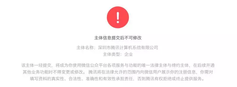 特別提醒:小程序主體信息一經(jīng)提交后不可修改。