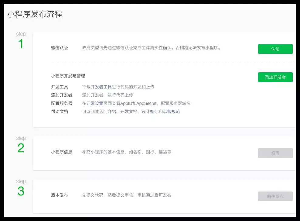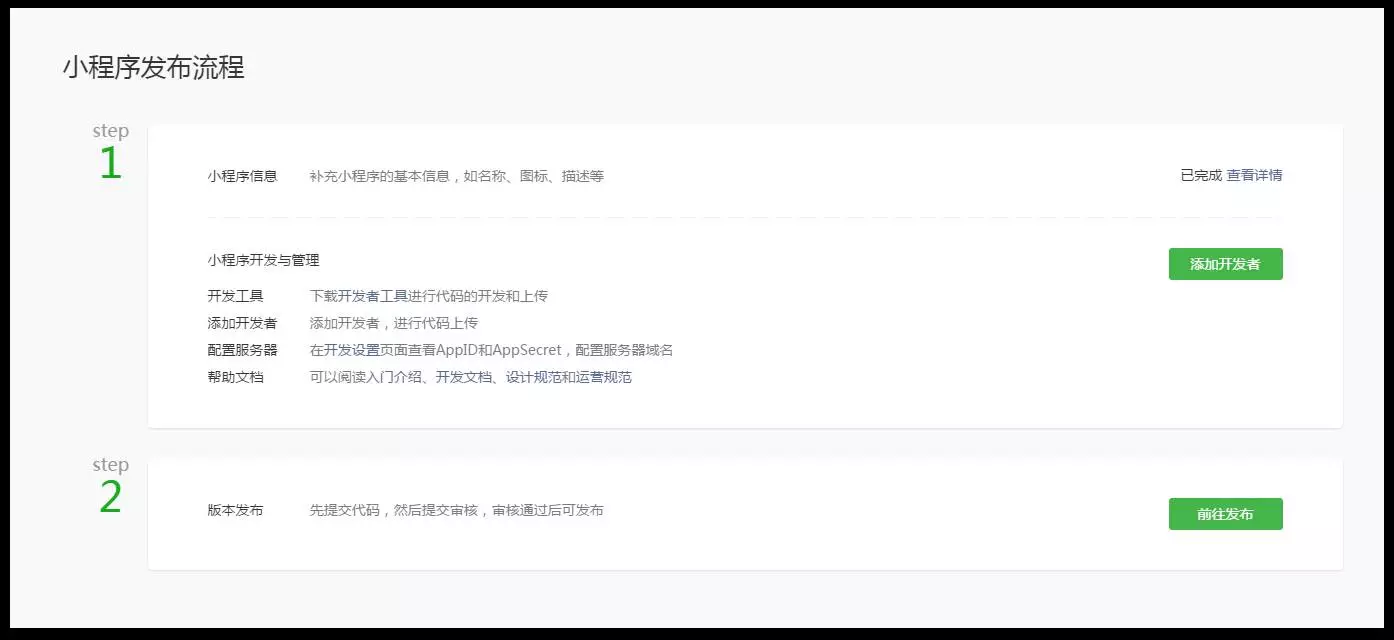 完成注冊后,微信小程序信息完善步驟和開發(fā)可同步進行。